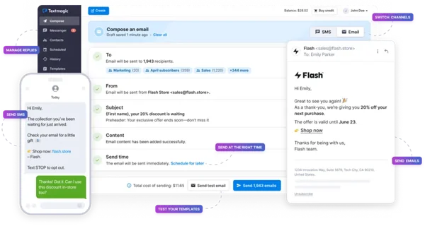 Textmagic’s one major strength is that it combines SMS and email channels. If your marketing or customer communication strategy uses both, Textmagic lets you handle them on a single platform and even use them in a complementary way.
