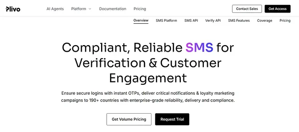 Plivo is a cloud communications platform similar to Twilio, offering API services for SMS, MMS, and voice calls. Often seen as a Twilio alternative, Plivo advertises simpler pricing and cost savings. It’s a good option for developers and enterprises that want the flexibility of an API solution but are sensitive to pricing or looking for certain features that Twilio might lack.