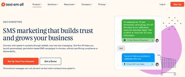 Text-Em-All is a well-known platform for group texting and voice broadcasting, widely used by organizations for alerts, announcements, and reminders. Its simplicity and reliability make it a solid choice for small teams. Users appreciate Text-Em-All’s intuitive interface and pay-as-you-go pricing.