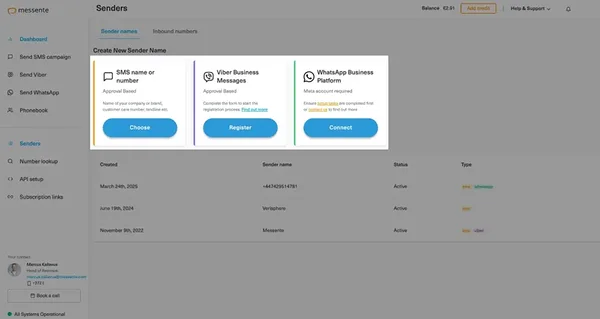 Unlike Text-Em-All, which primarily focuses on US and Canada-based texting and calling and doesn’t offer any OTT messaging channels, Messente is built for international messaging and also offers WhatsApp and Viber channels in addition to SMS.
