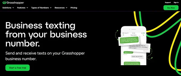 Essentially, Grasshopper allows you to run a professional phone line for your business without physical hardware. It provides features like call forwarding, voicemail transcription, and, of course, SMS texting from your business number. Grasshopper is popular among freelancers and small teams who want to project a professional image and keep work communications separate from personal lines.