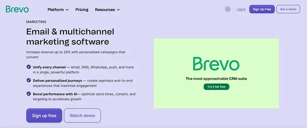 7. Brevo: Multi-channel marketing platform with integrated SMS