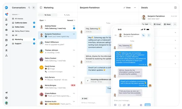 Salesmsg offers a robust SMS app with a custom inbox that makes ongoing customer conversations easier. It also supports voice calls and connects well with CRMs, automatically linking all text and call activities—a helpful feature for sales teams.