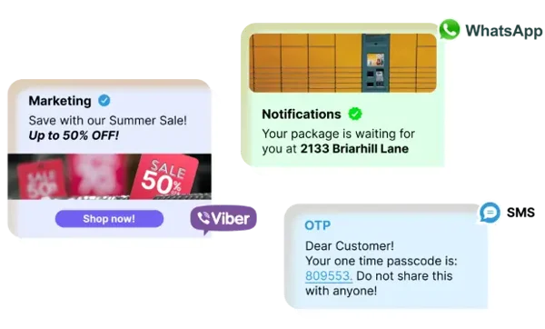 Messente combines SMS, WhatsApp, and Viber into a single API, enabling easy communication with customers across multiple channels. If Viber and WhatsApp are unavailable, there is a fallback option that sends messages via SMS to ensure delivery.